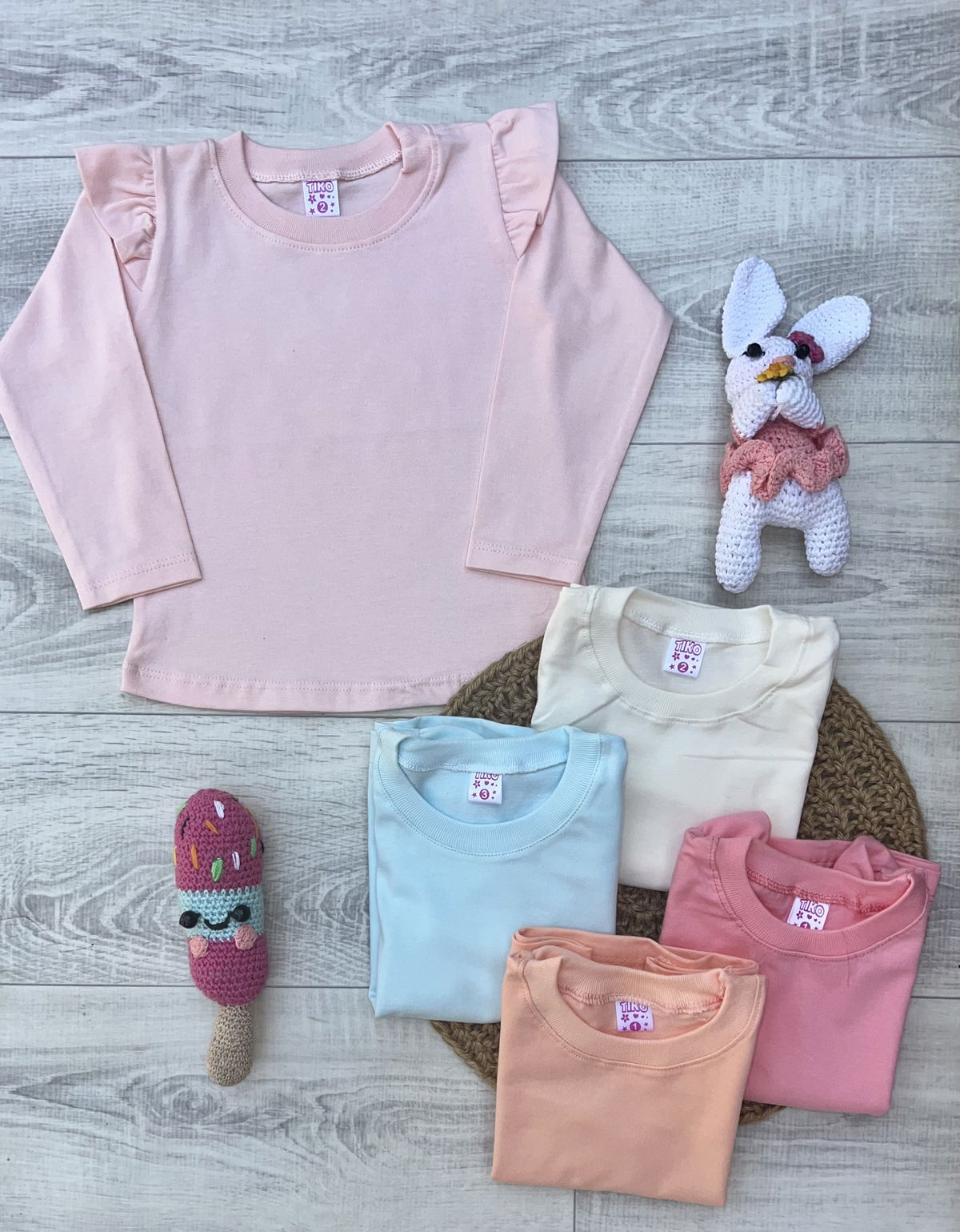 Preciosas camisetas lisas con volados en hombro! Bien delicadas!
