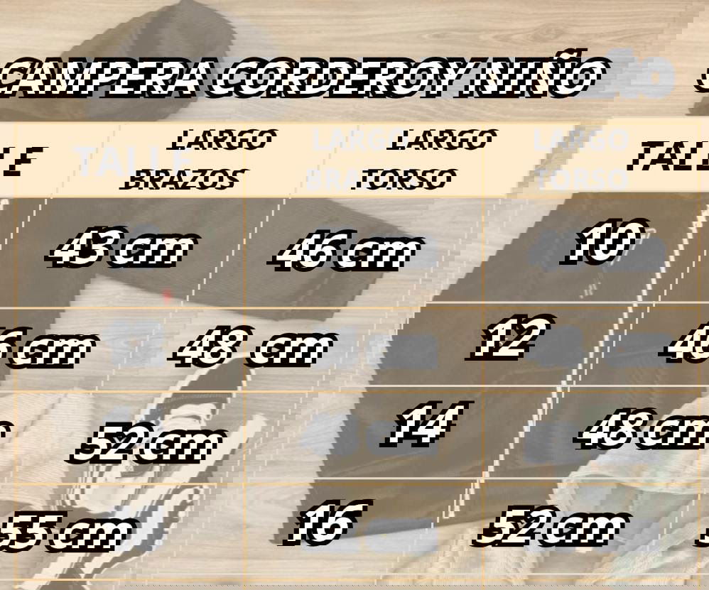 - Guía de talles: Al final de las imágenes encontraras la tabla de medidas. Podés utilizarla para comparar con las medidas de alguna prenda de tu peque. Al tratarse de prendas con procesos manuales puede haber una mínima diferencia entre el producto y la tabla.