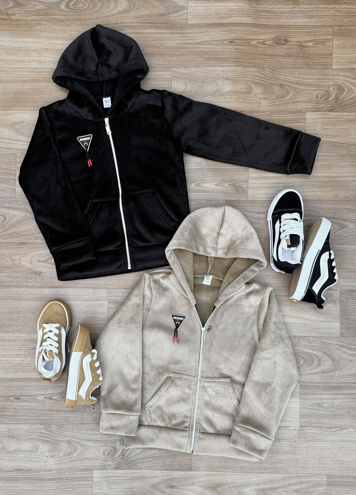 Campera corderoy frisada, suuuper calentita! Excelente para completar cualquier look! Con bolsillos canguro adelante y capucha.