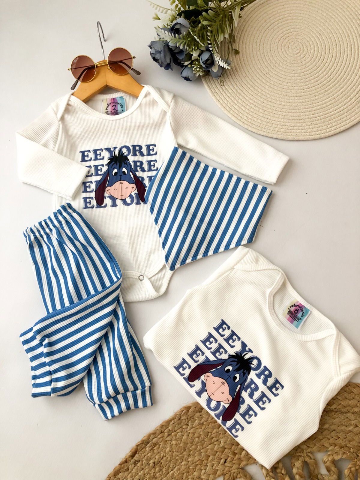 Confeccionado en tela waffle, calidad premium. Talles justos. Abarcan de 0 a 18 meses aproximadamente.