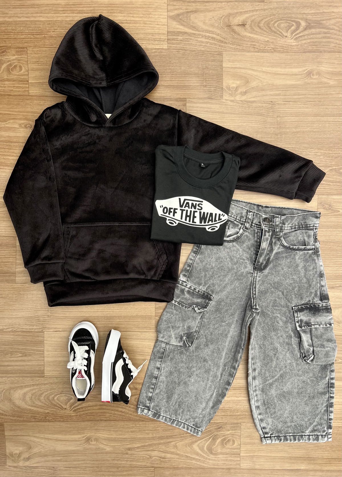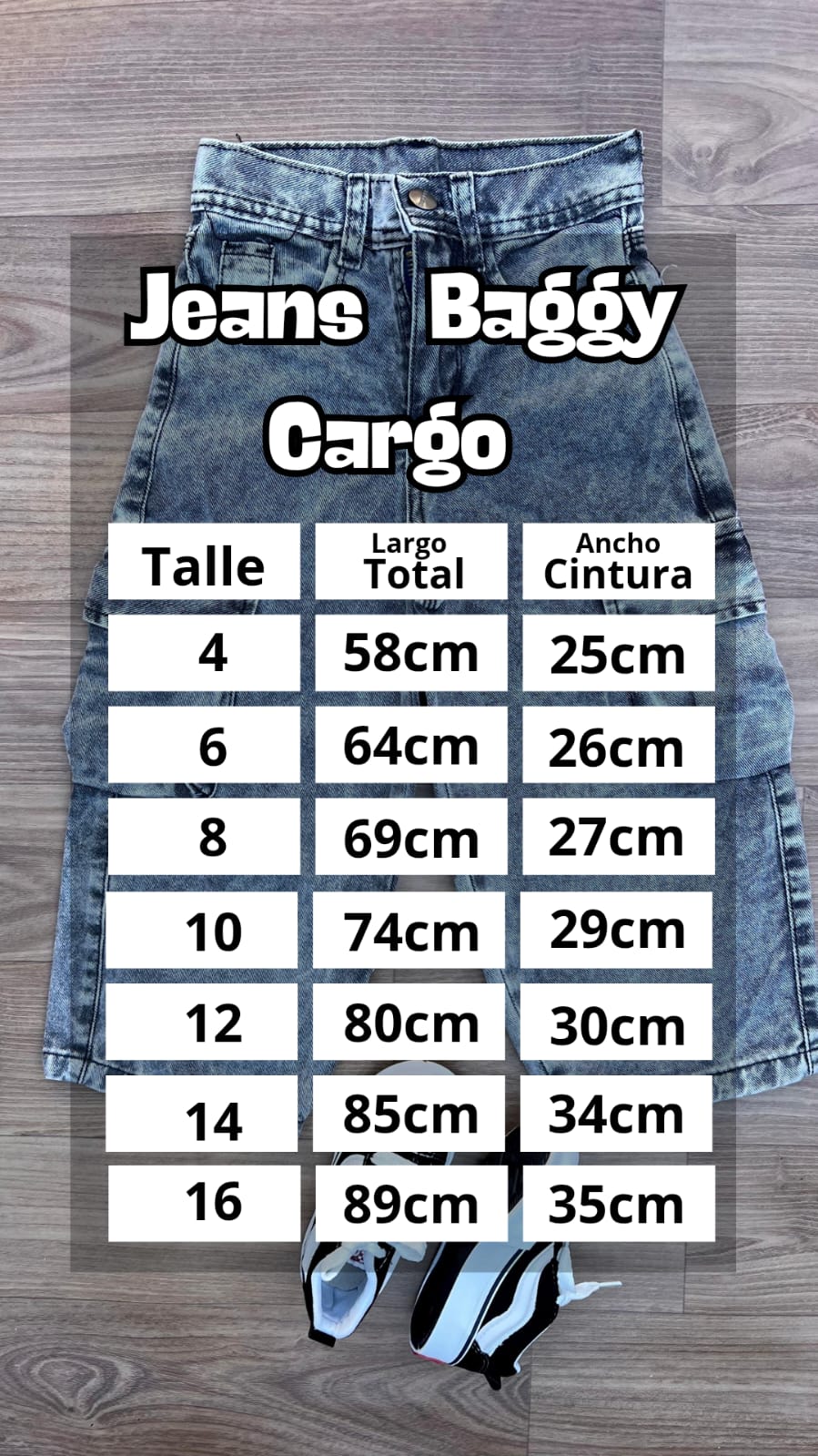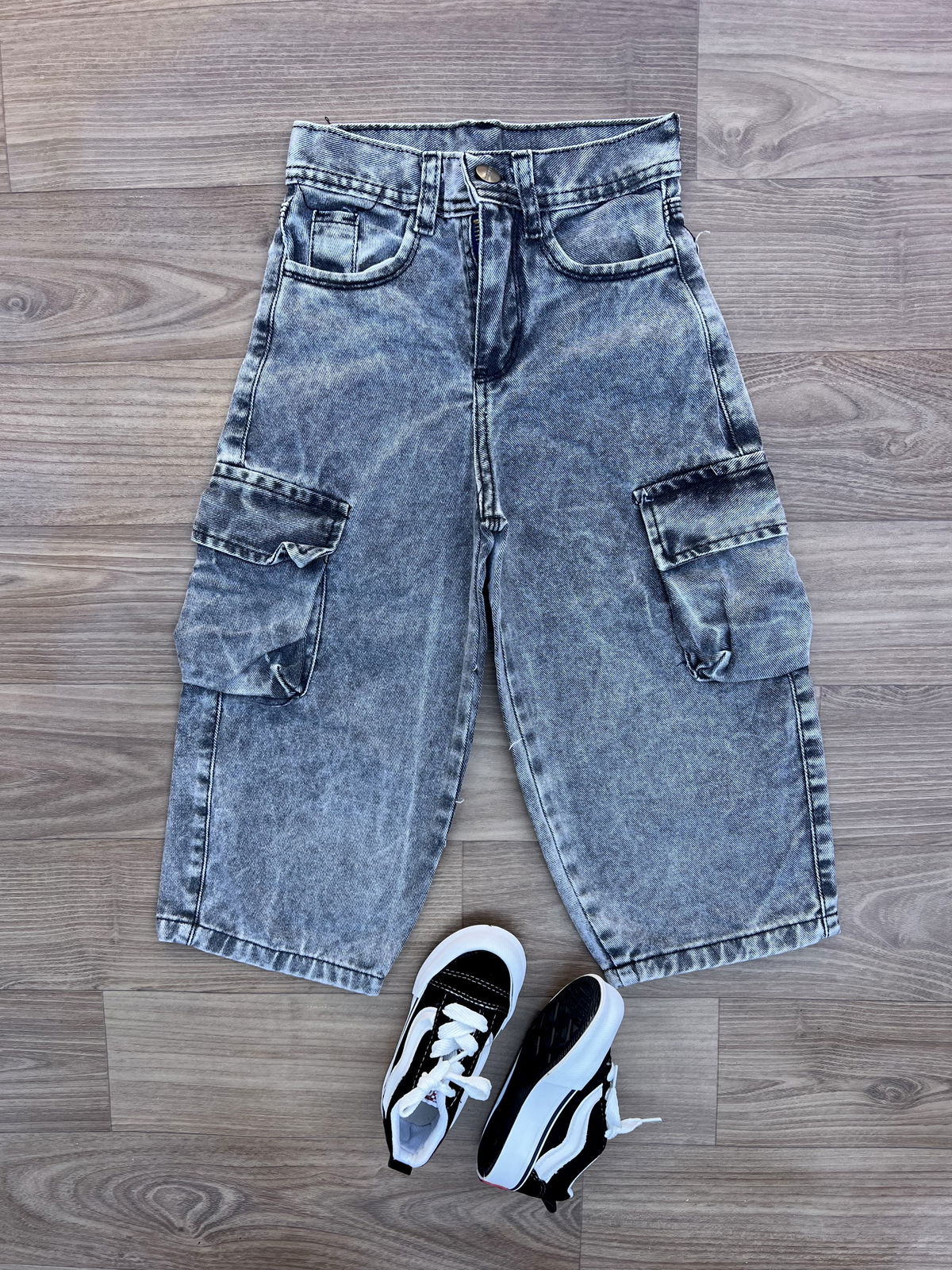 Modelo ancho, cintura ancha. Con bolsillos cargo a los costados.