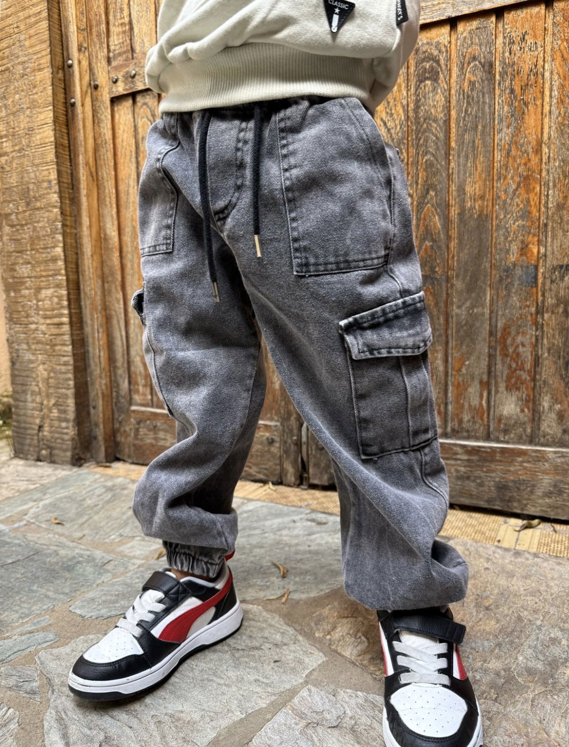 Jeans mom cargo niño ! Tendencia y comodidad en una sola prenda!