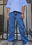 Estilo mom, recto, sin puño y con detalles de pinzas. Rígido.
