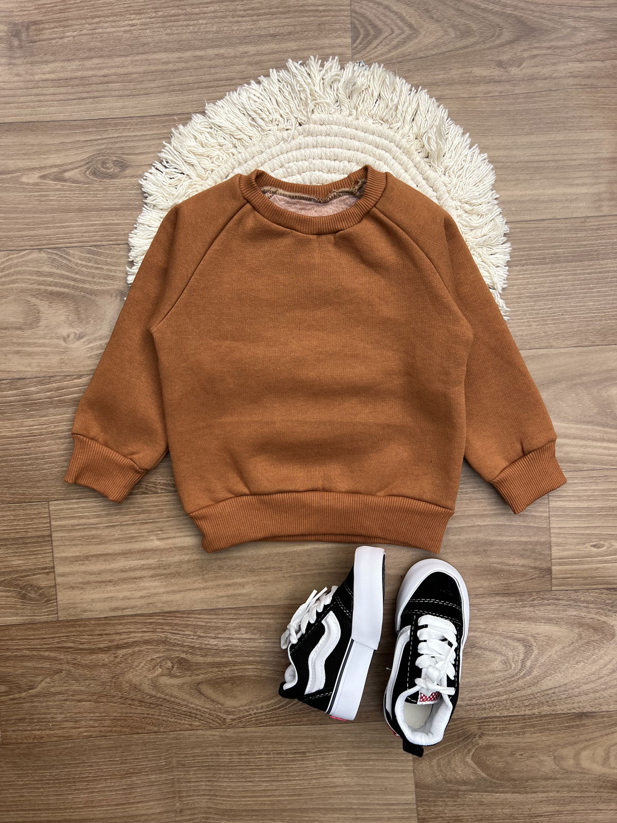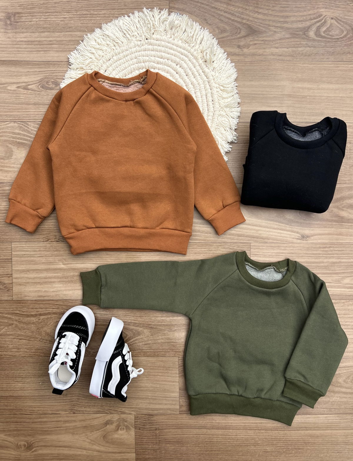 Confeccionado en algodón frisado, cuello redondo elastizado.