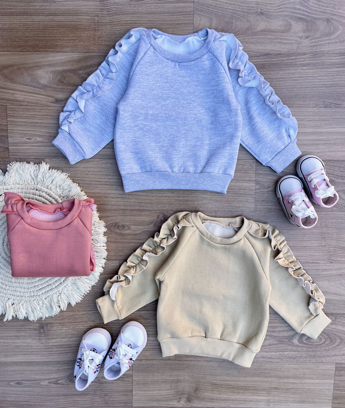 Buzo beba! Súper combinable con todo! Por su diseño liso! Básico infaltable en el placard de tu peque! Con volados en brazos que lo hacen súpe lindo!