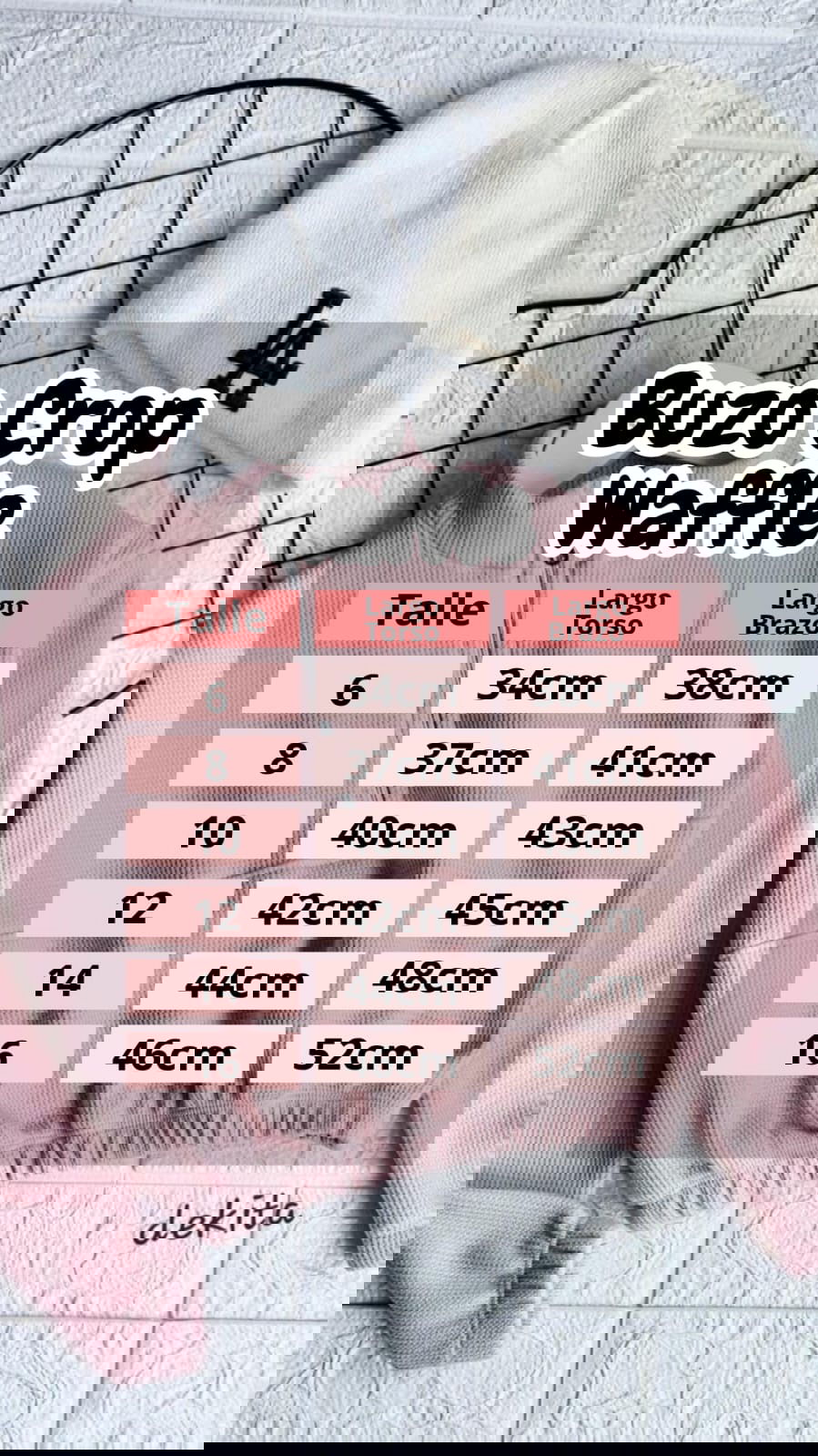 - Guía de talles: Al final de las imágenes encontraras la tabla de medidas. Podés utilizarla para comparar con las medidas de alguna prenda de tu peque. Al tratarse de prendas con procesos manuales puede haber una mínima diferencia entre el producto y la tabla.