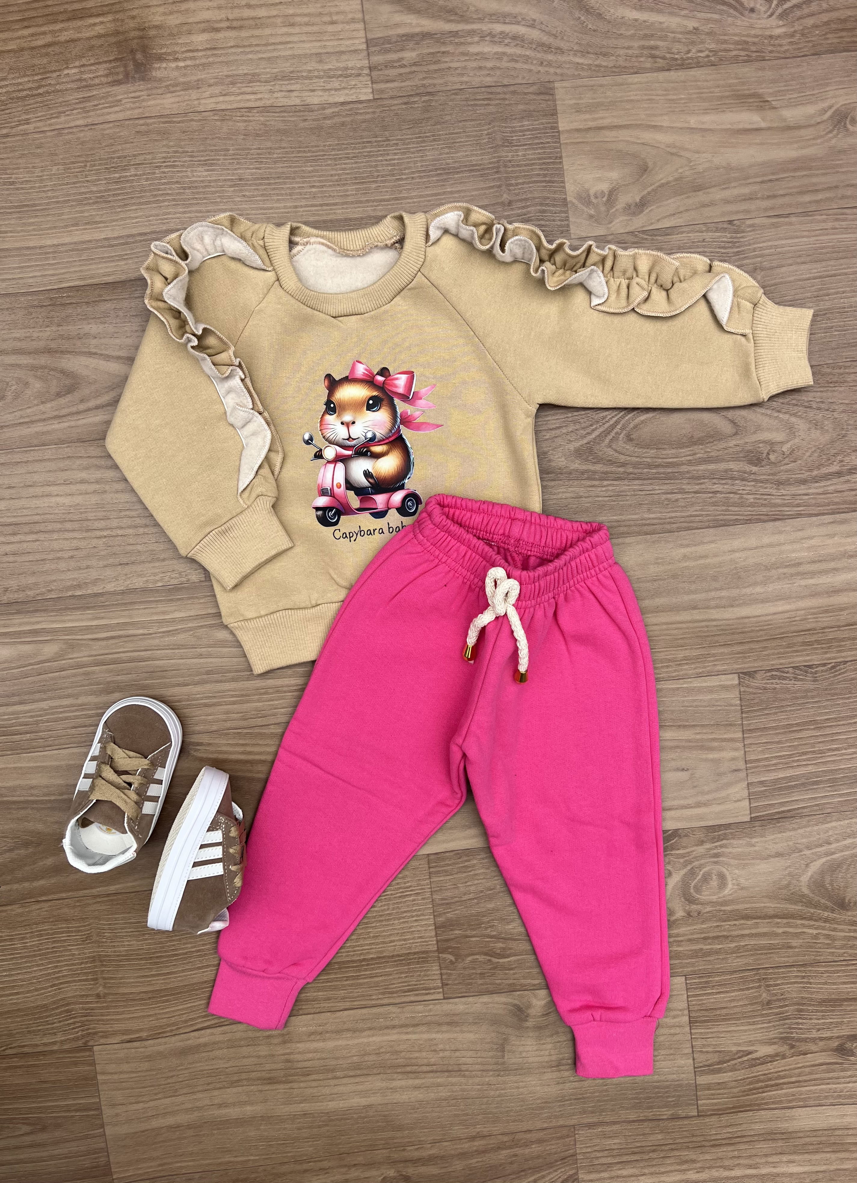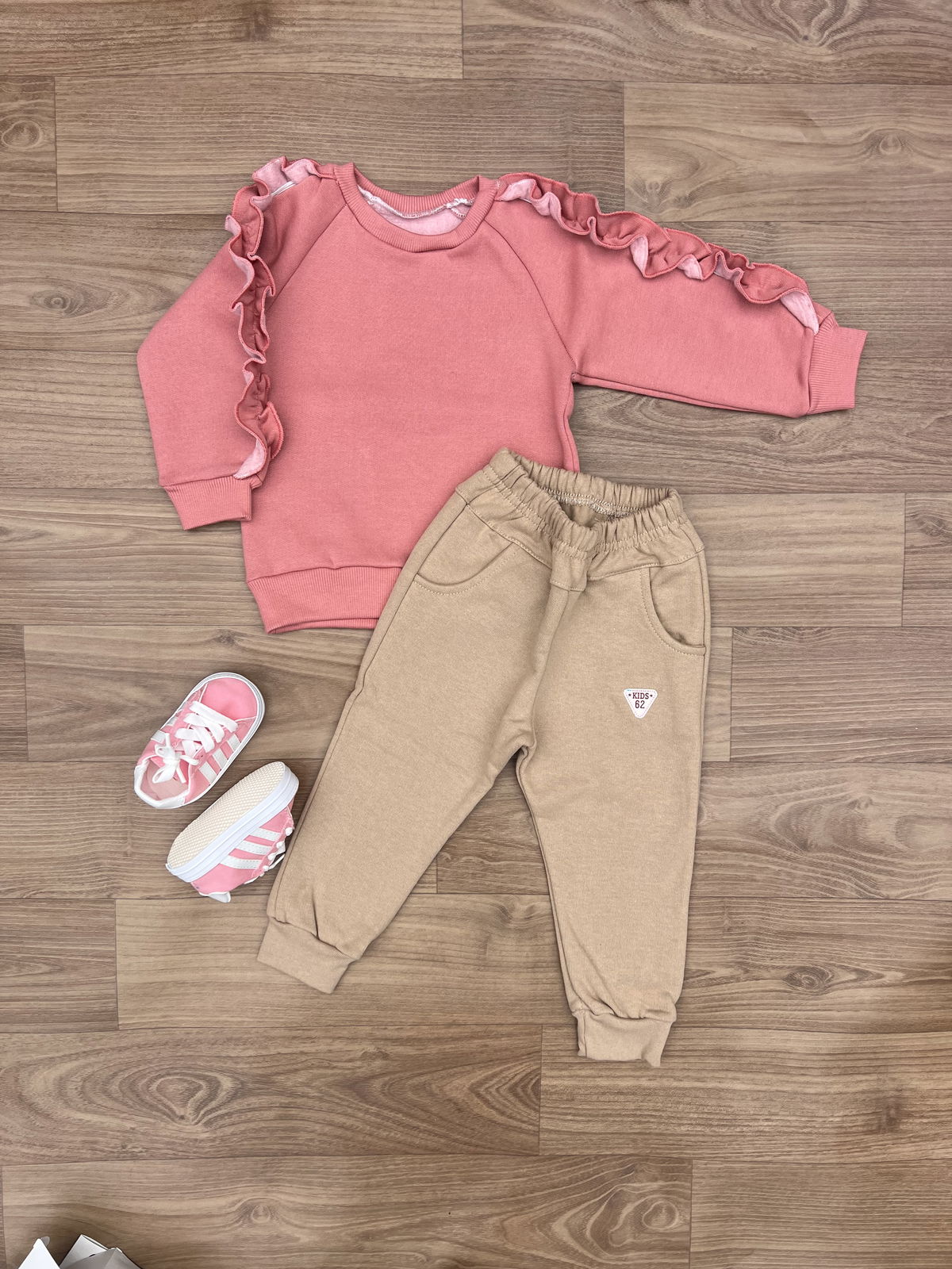 Buzo con volados en brazos + Joggins con bolsillos. Confeccionado en tela algodón frisado. Los talles abarcan de 0 a 15/18 meses aprox