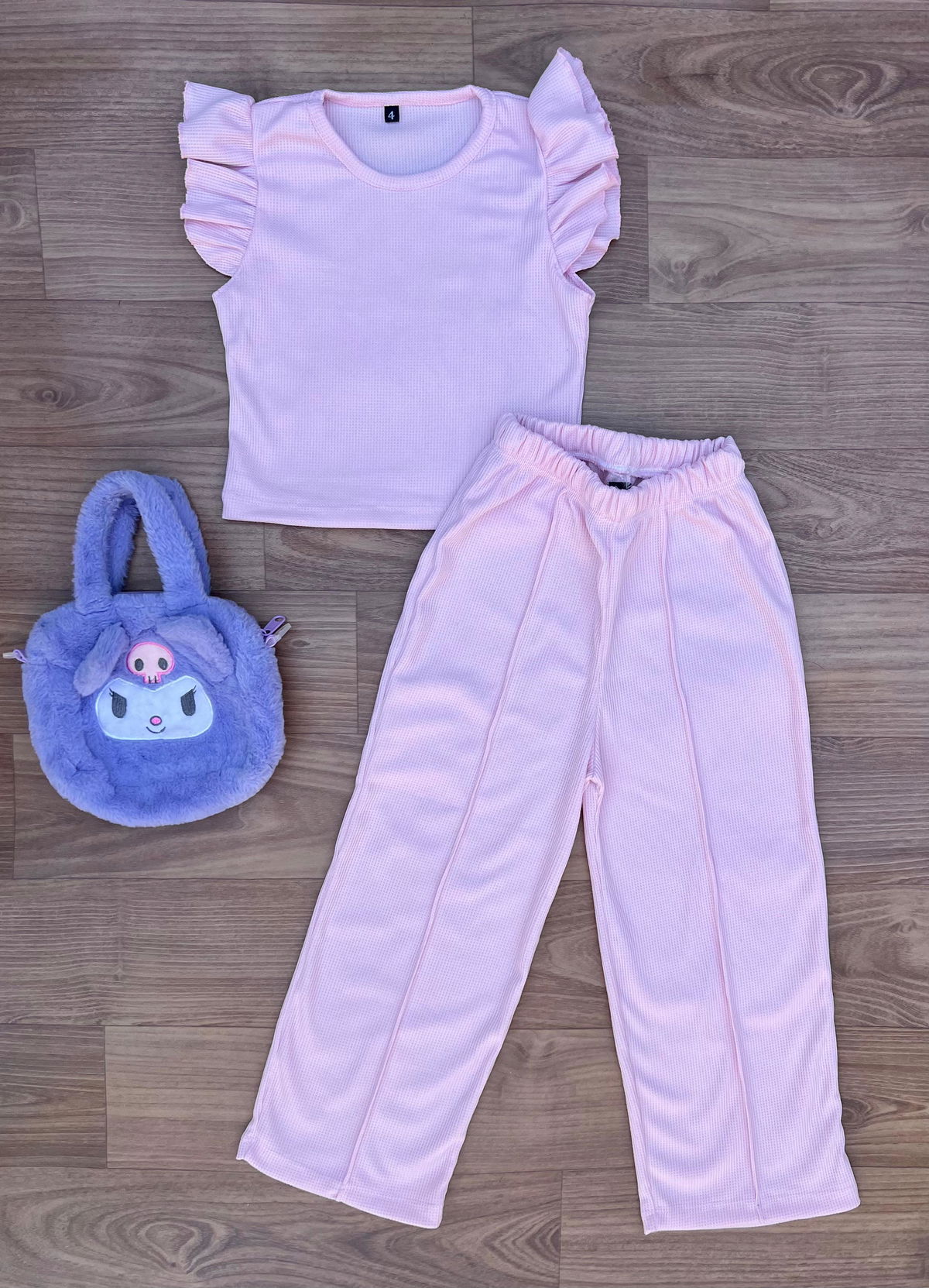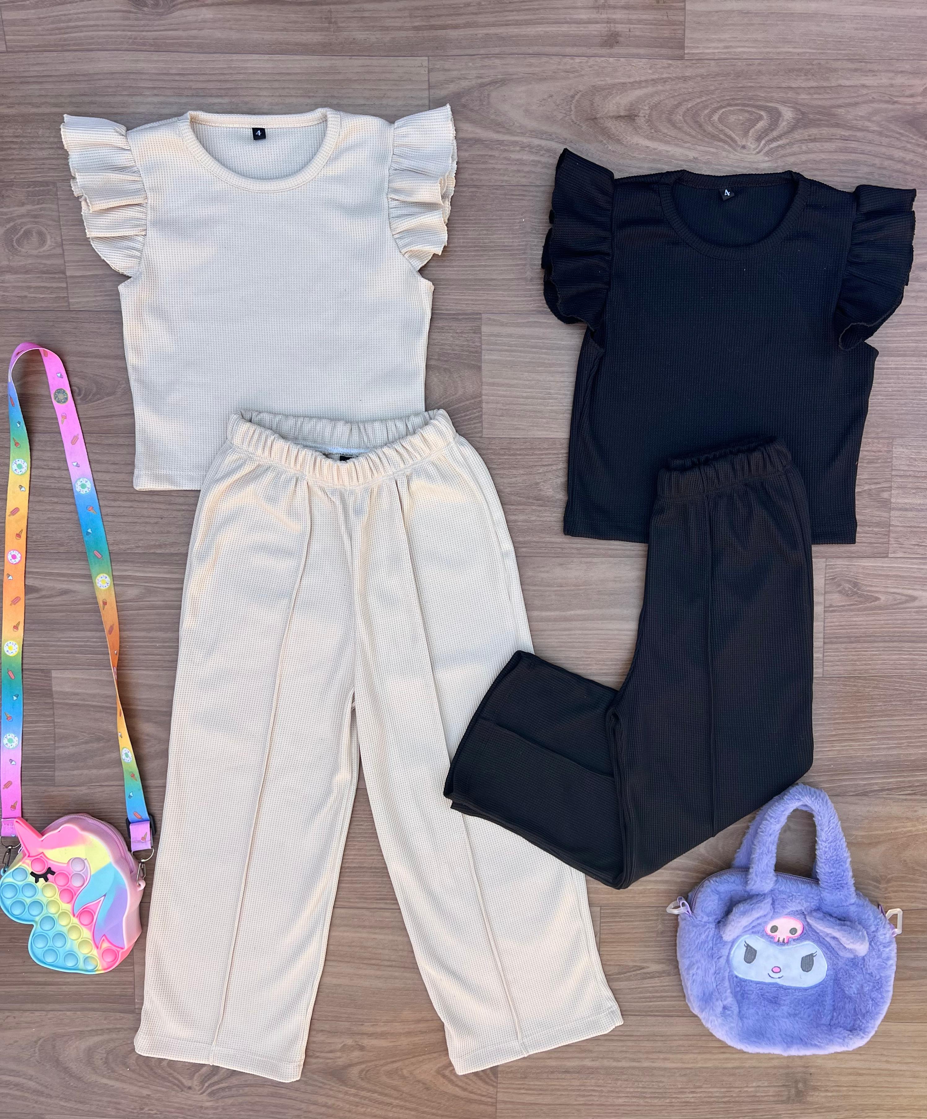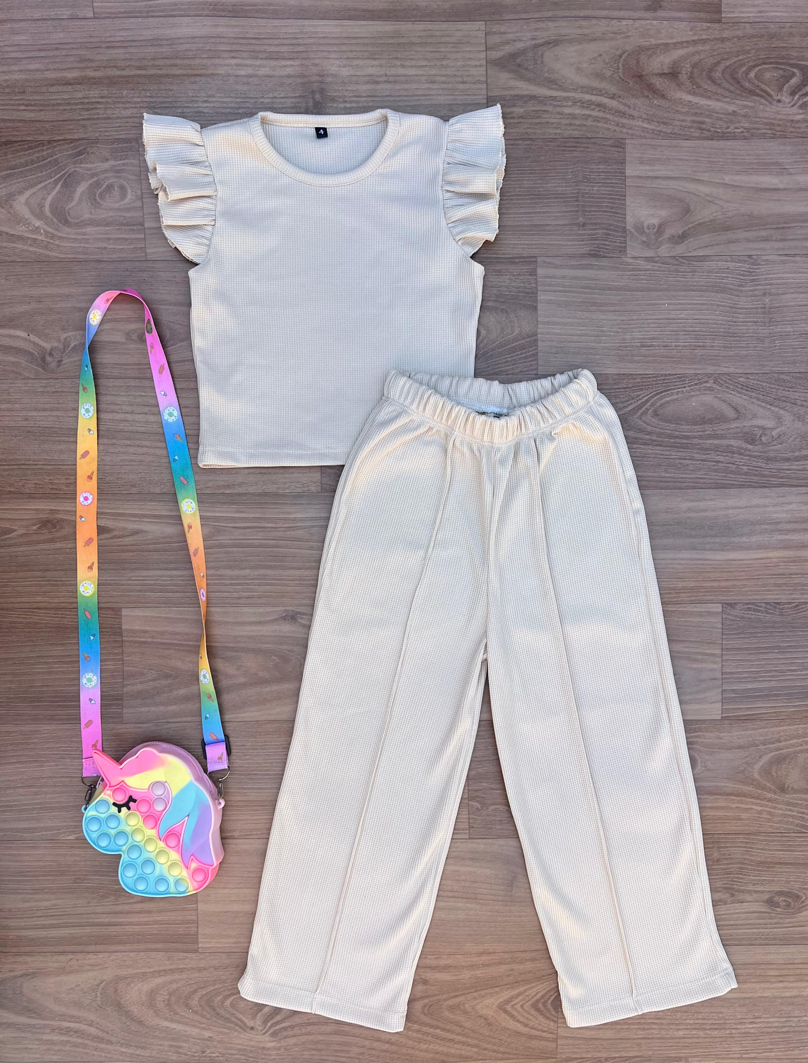 Top con volados + Palazzo. Confeccionado en tela Waffle, Tela fresca de primavera/verano.
