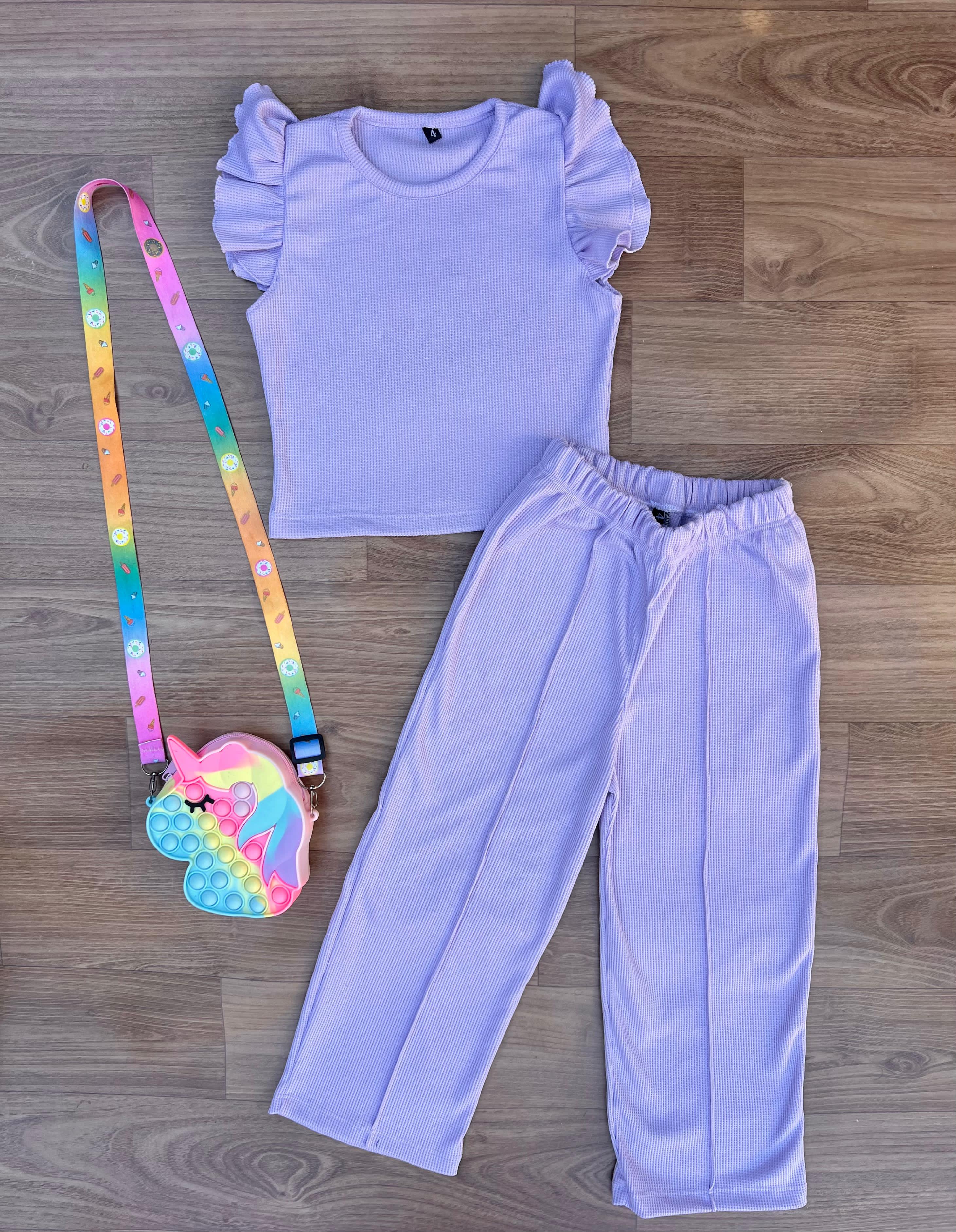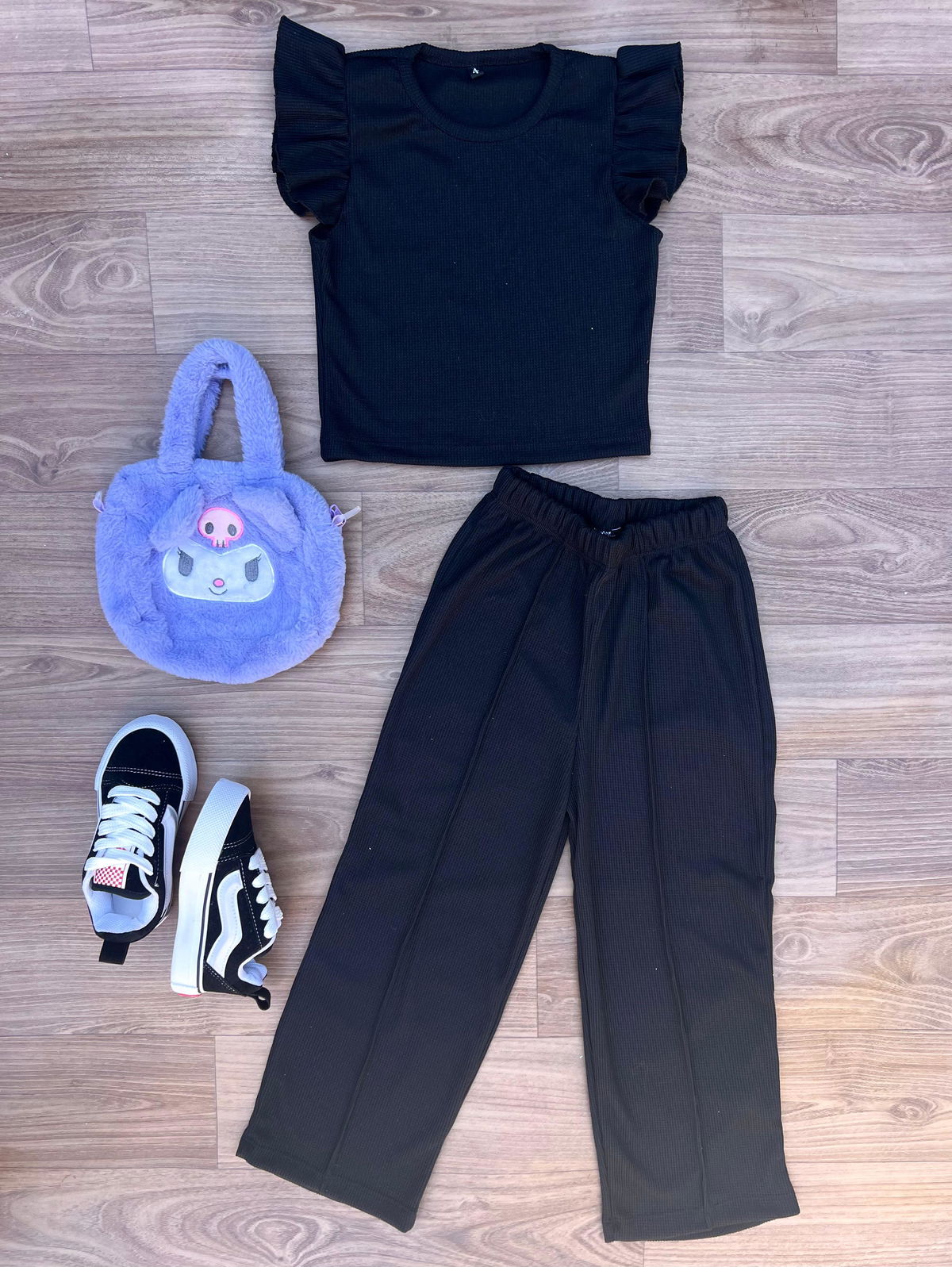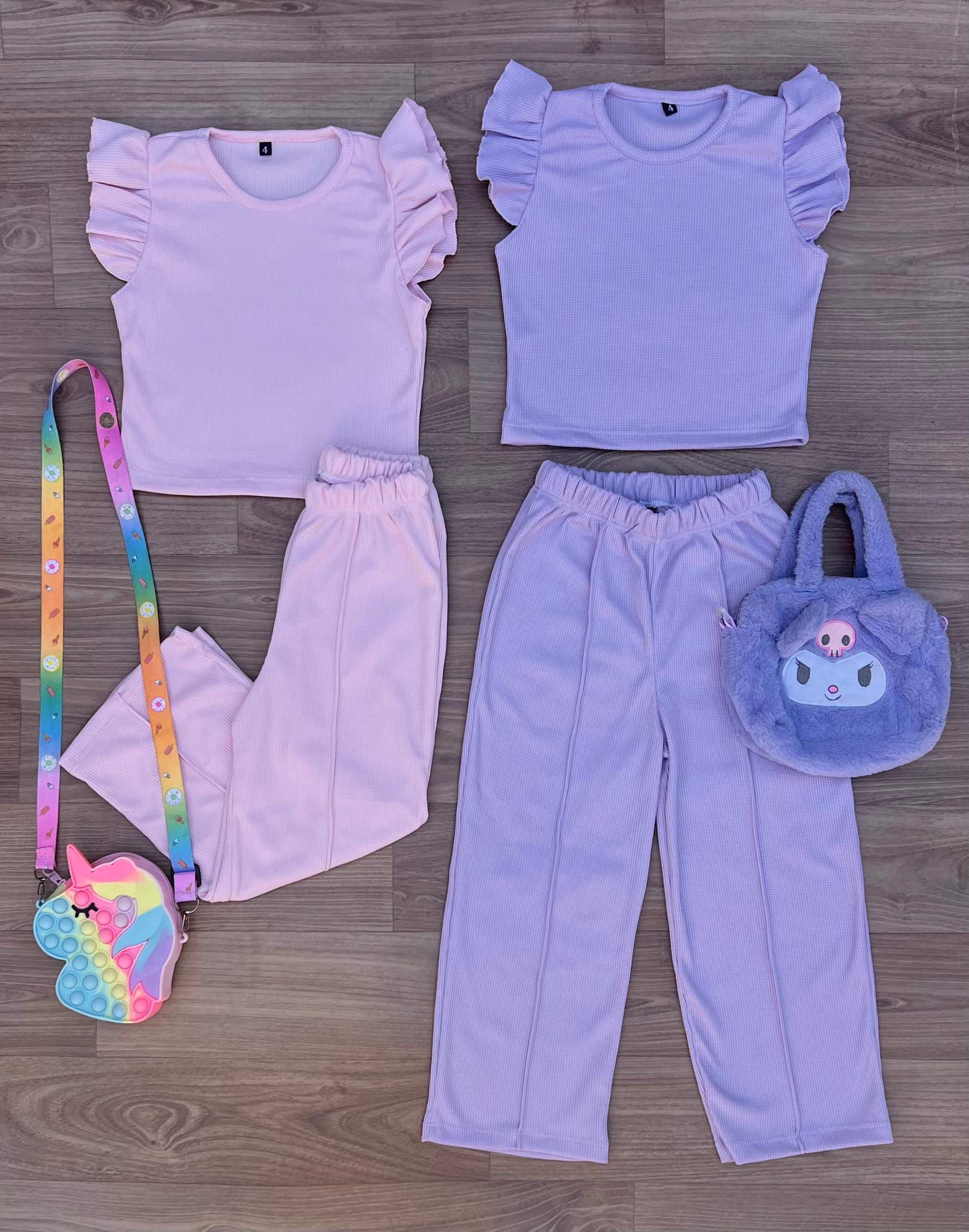 Top con volados + Palazzo. Confeccionado en tela Waffle, Tela fresca de primavera/verano.