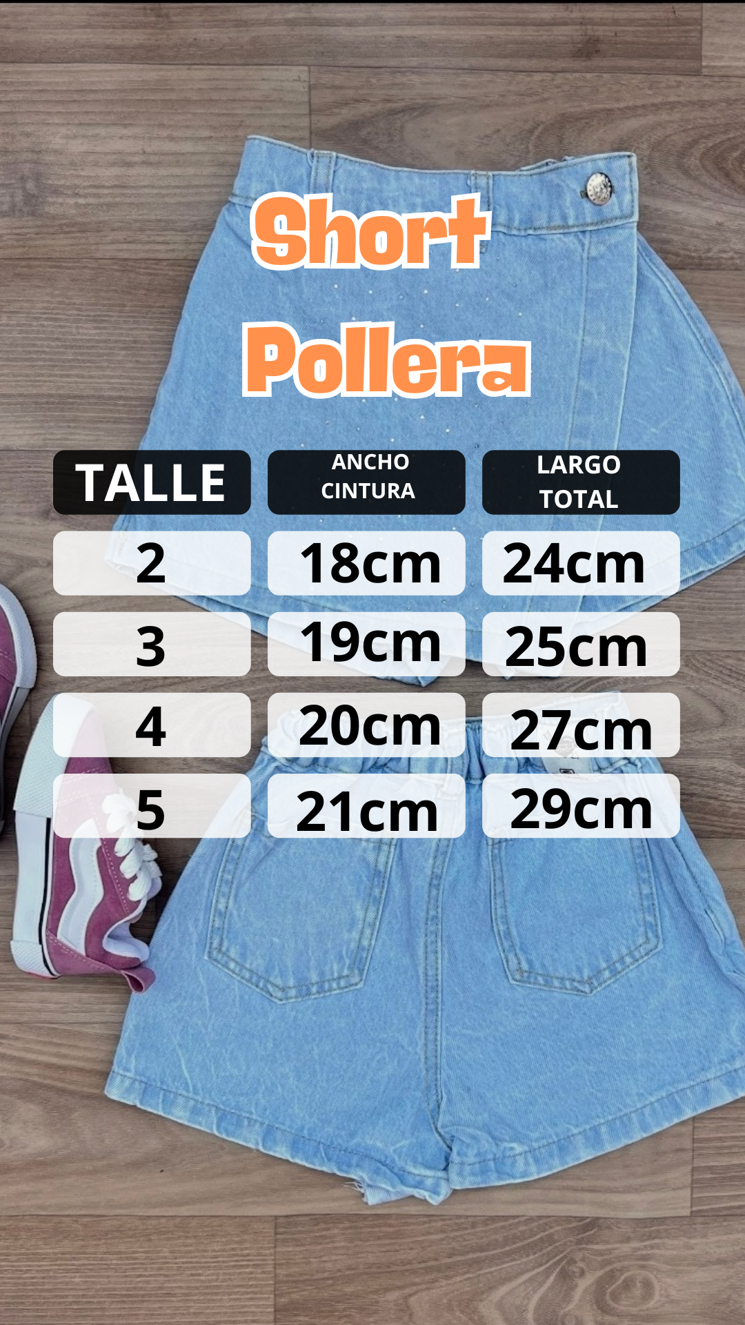 Importante, Las medidas están tomadas en base al short, el detalle de la pollerita que lleva arriba puede tener 1 cm más de largo aproximadamente.