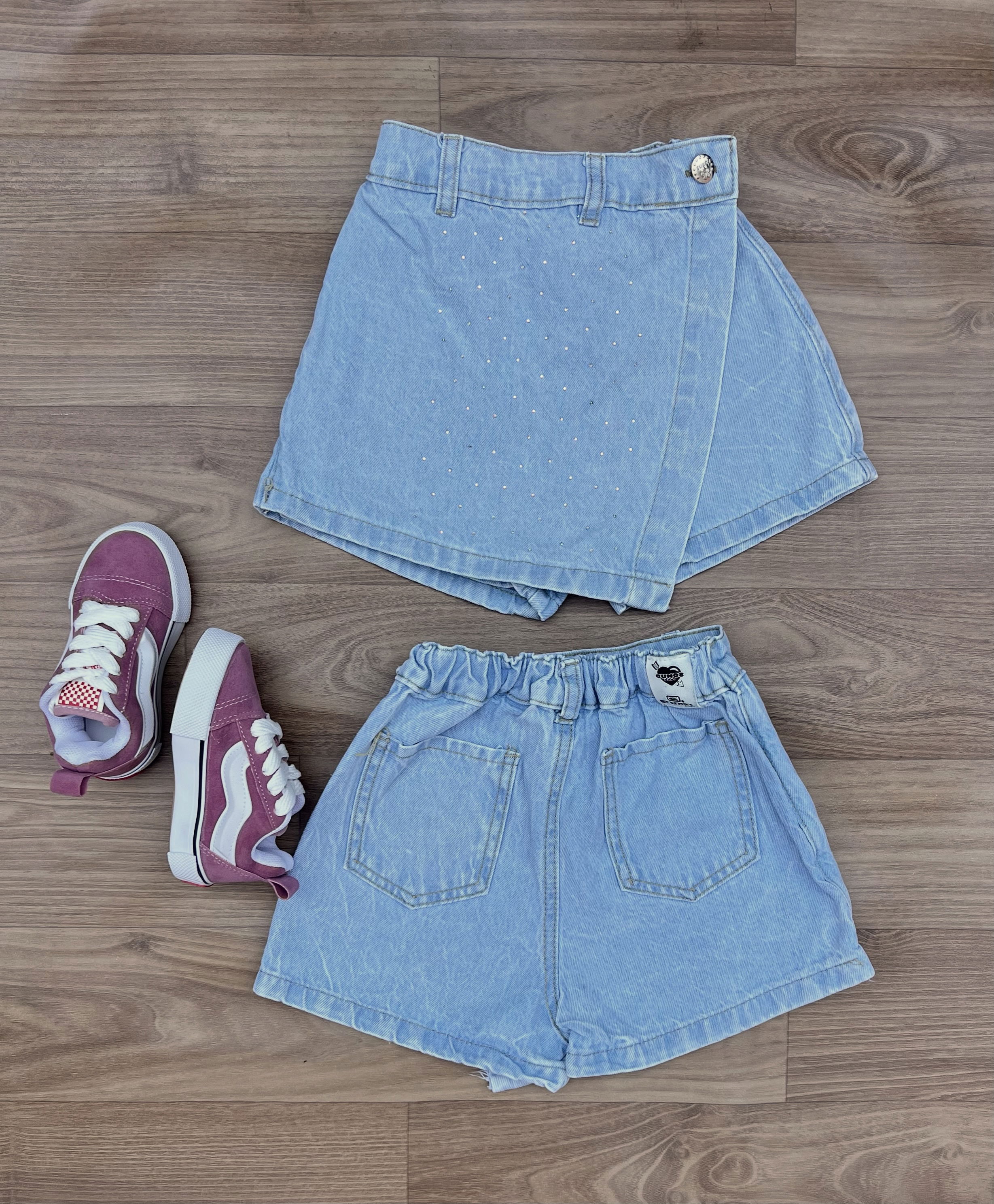 Son de jeans rígido! adelante es pollera y atrás es short! Súper comodos para que puedan jugar tranquilas :)