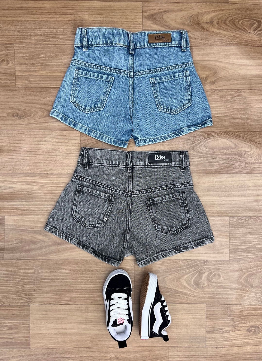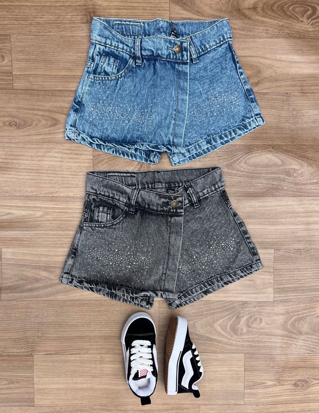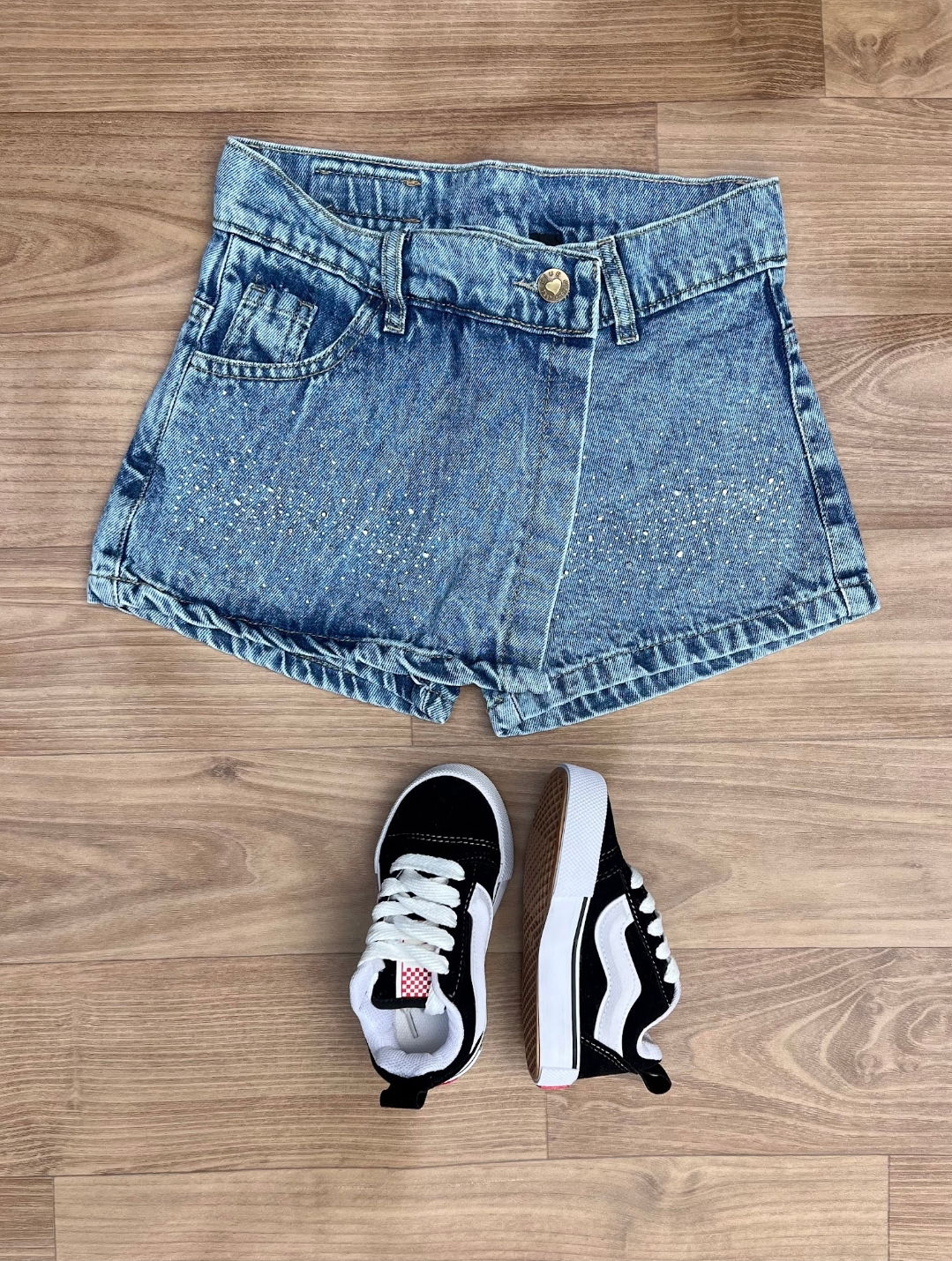 Son de jeans rígido! adelante es pollera y atrás es short! Súper comodos para que puedan jugar tranquilas :)