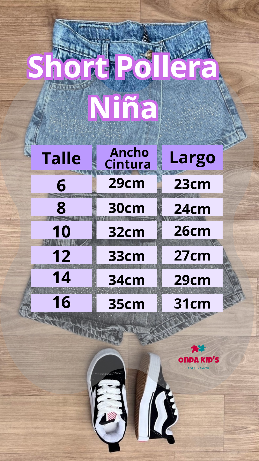 Importante, Las medidas están tomadas en base al short, el detalle de la pollerita que lleva arriba puede tener 1 cm más de largo aproximadamente.
