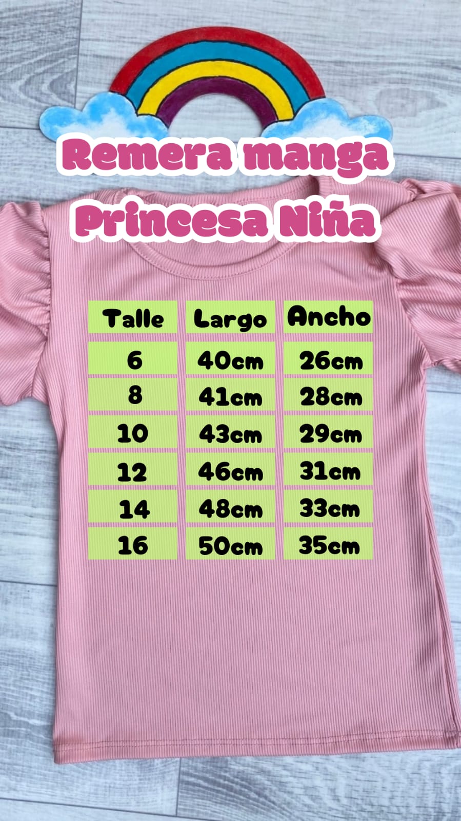 - Guía de talles: Podés utilizarla para comparar con las medidas de alguna prenda de tu peque. Al tratarse de prendas con procesos manuales puede haber una mínima diferencia entre el producto y la tabla.