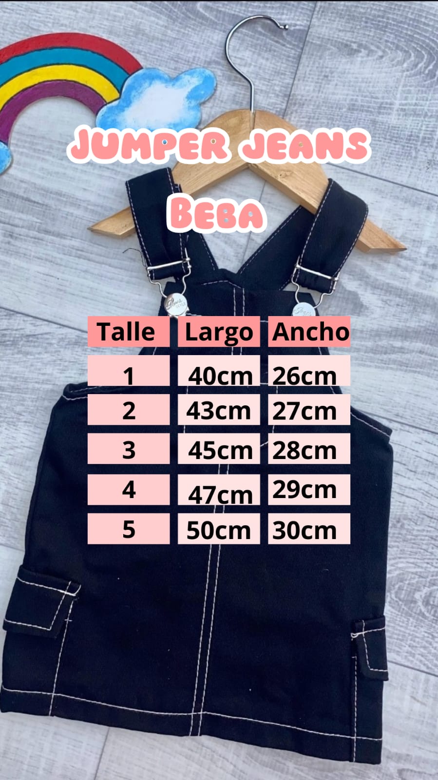 - Guía de talles: Podés utilizarla para comparar con las medidas de alguna prenda de tu peque. Al tratarse de prendas con procesos manuales puede haber una mínima diferencia entre el producto y la tabla.