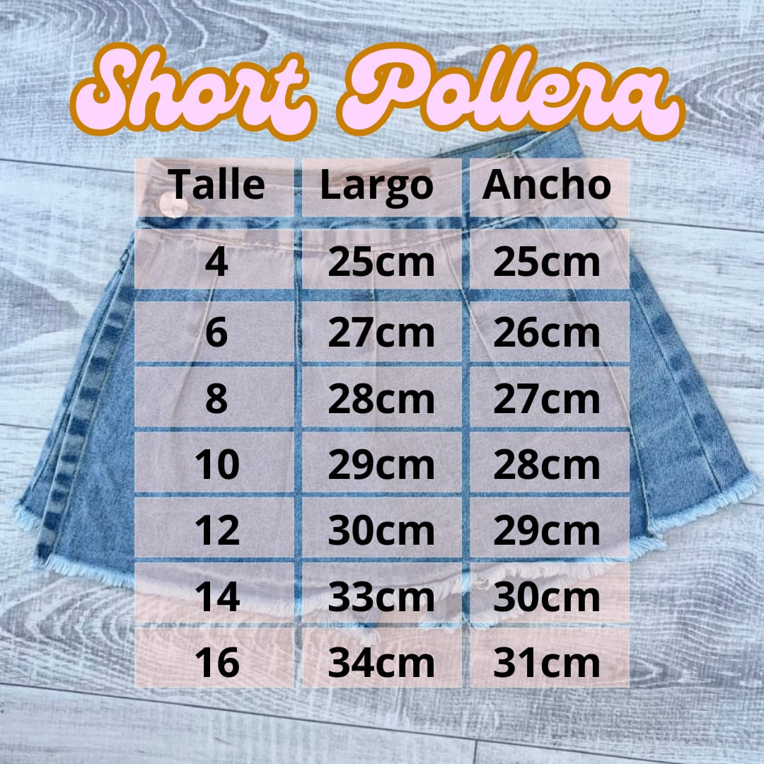 Importante, Las medidas están tomadas en base al short, el detalle de la pollerita que lleva arriba puede tener 1 cm más de largo aproximadamente.