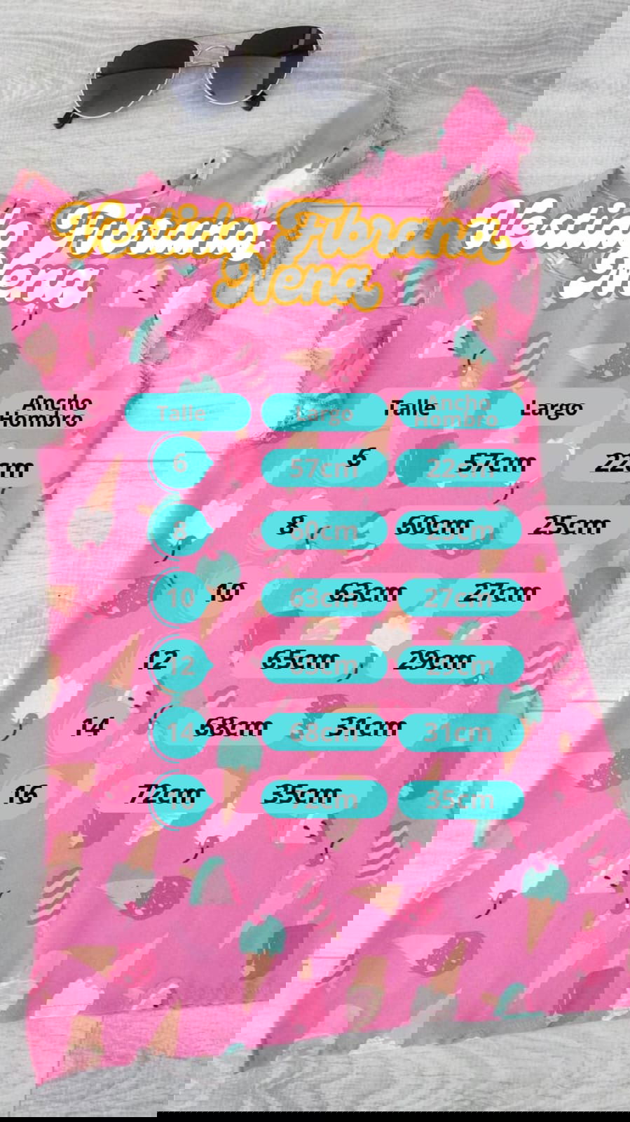 - Guía de talles: Podés utilizarla para comparar con las medidas de alguna prenda de tu peque. Al tratarse de prendas con procesos manuales puede haber una mínima diferencia entre el producto y la tabla.
