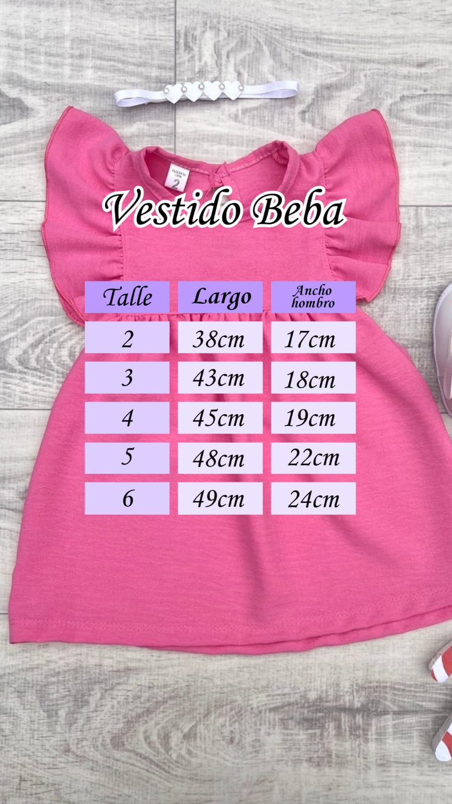 - Guía de talles: Podés utilizarla para comparar con las medidas de alguna prenda de tu peque. Al tratarse de prendas con procesos manuales puede haber una mínima diferencia entre el producto y la tabla.